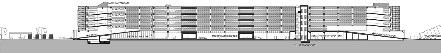 Autoilijoille on tarjolla 393 pysäköintipaikkaa, lyhyt- ja pitkäaikaiseen pysäköintiin kuin myös vuosisopimusasiakkuuksiin. Neljännes paikoista on varustettu latausmahdollisuudella. Latauskapasiteettia kasvatetaan vaiheittain autojen sähköistyksen edetessä.